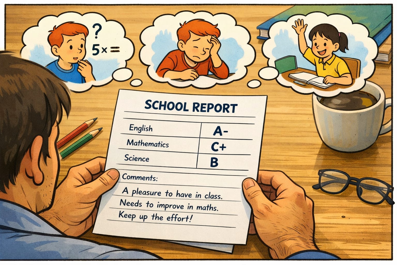 There’s a particular feeling that comes with opening a school report. You scan the grades, read the teacher’s comments, and for a moment it all seems clear enough. Your child is doing well in English. Maths needs some work. They’re a pleasure to have in class.